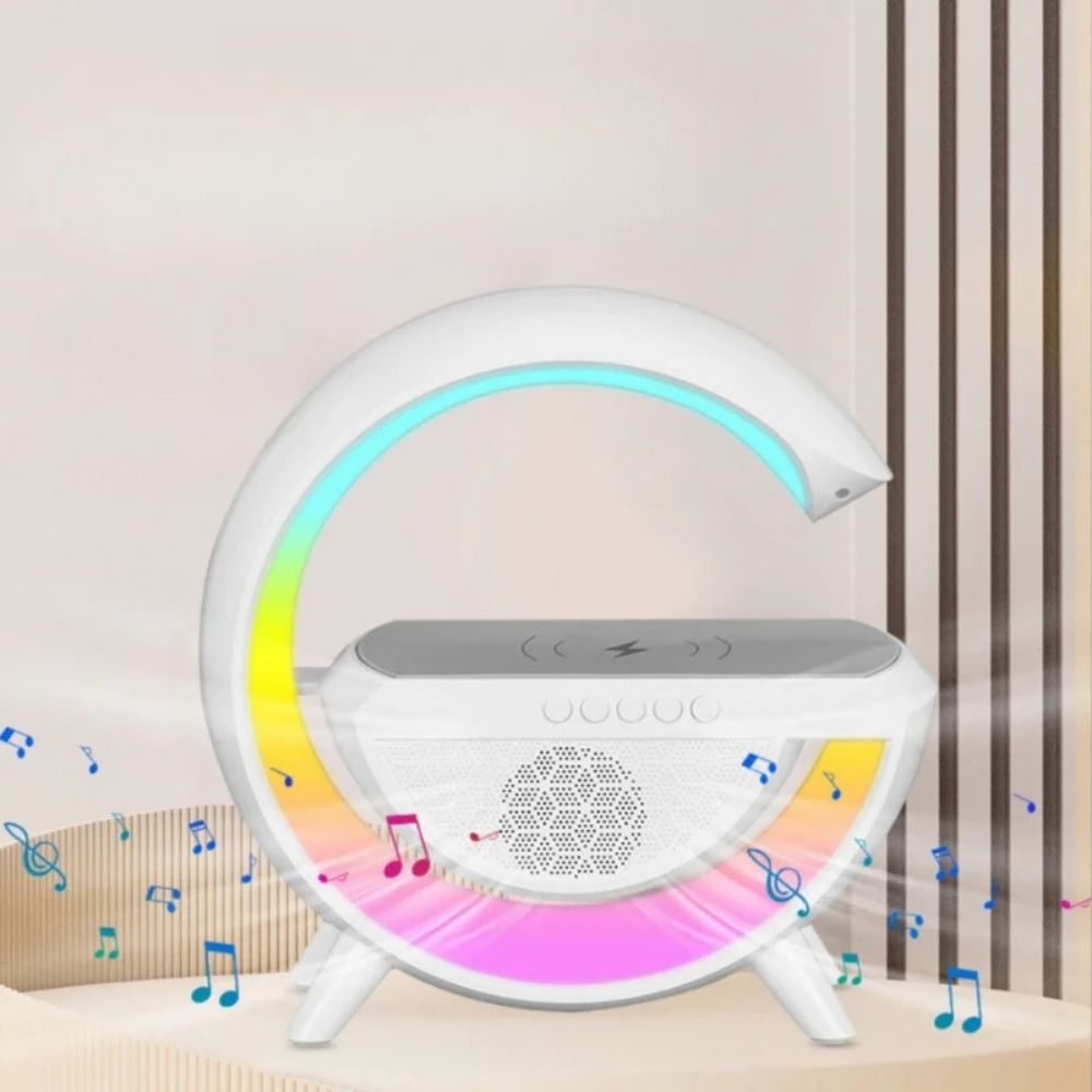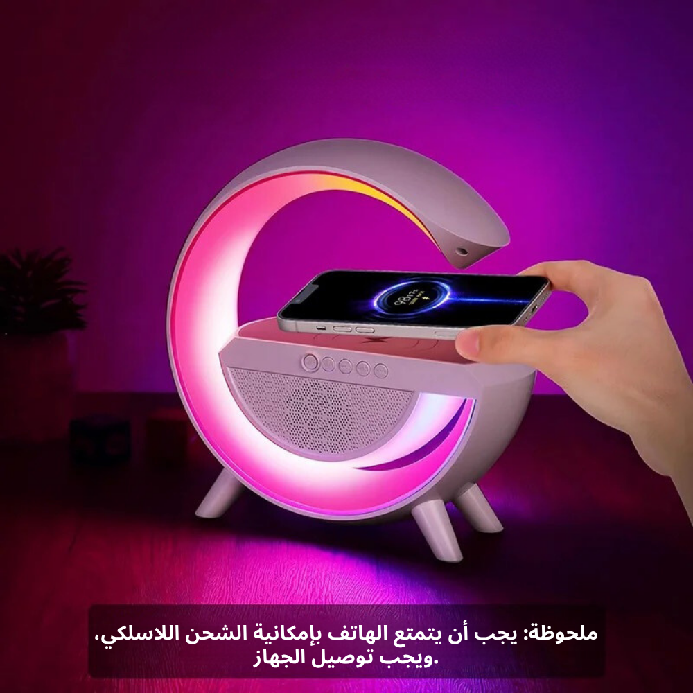 شاحن لاسلكي للهواتف مع اضاءة متعددة ومكبر صوت