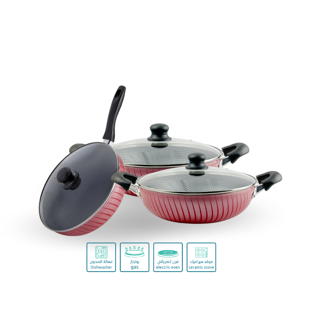 طقم مقالي غير لاصقة مع أغطية زجاجية - 3 أحجام عملية