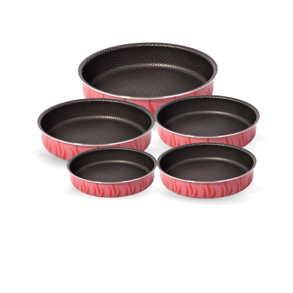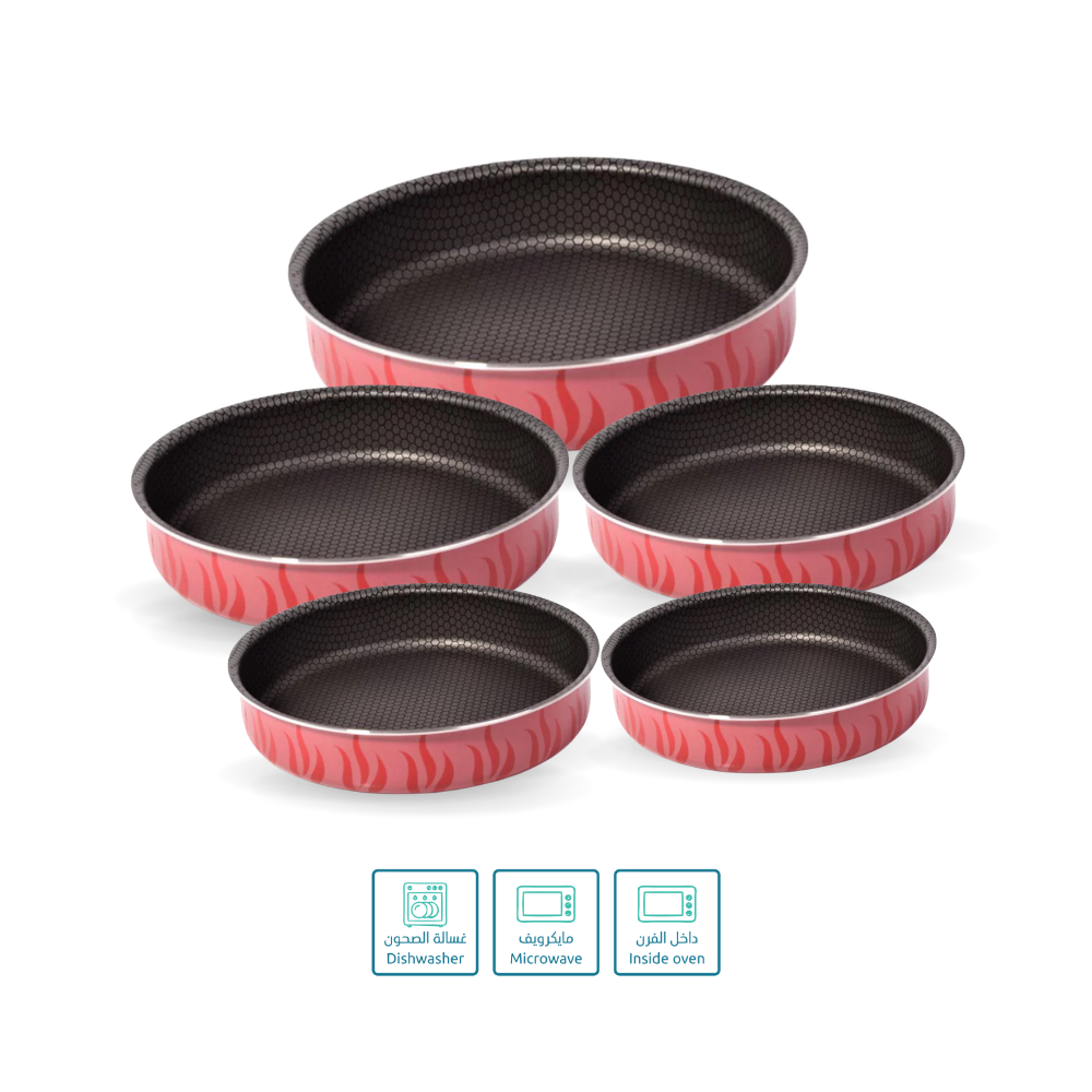 طقم 5 صواني دائرية الشكل بسطح مانع للالتصاق مقاس 36 - 32 - 28 - 24 - 20 سم.