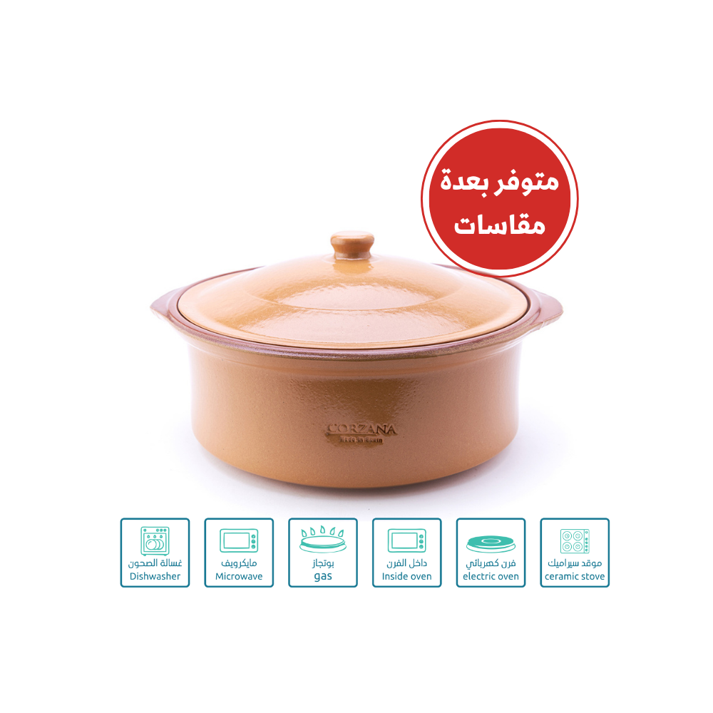 قدر فخار اسباني من كورزانا تم صناعته بشكل يدوي من الفخار الطبيعي ذات الجودة العالية لضمان طهي الطعام بشكل صحي مع الحفاظ على النكهات الاصلية للطعام.