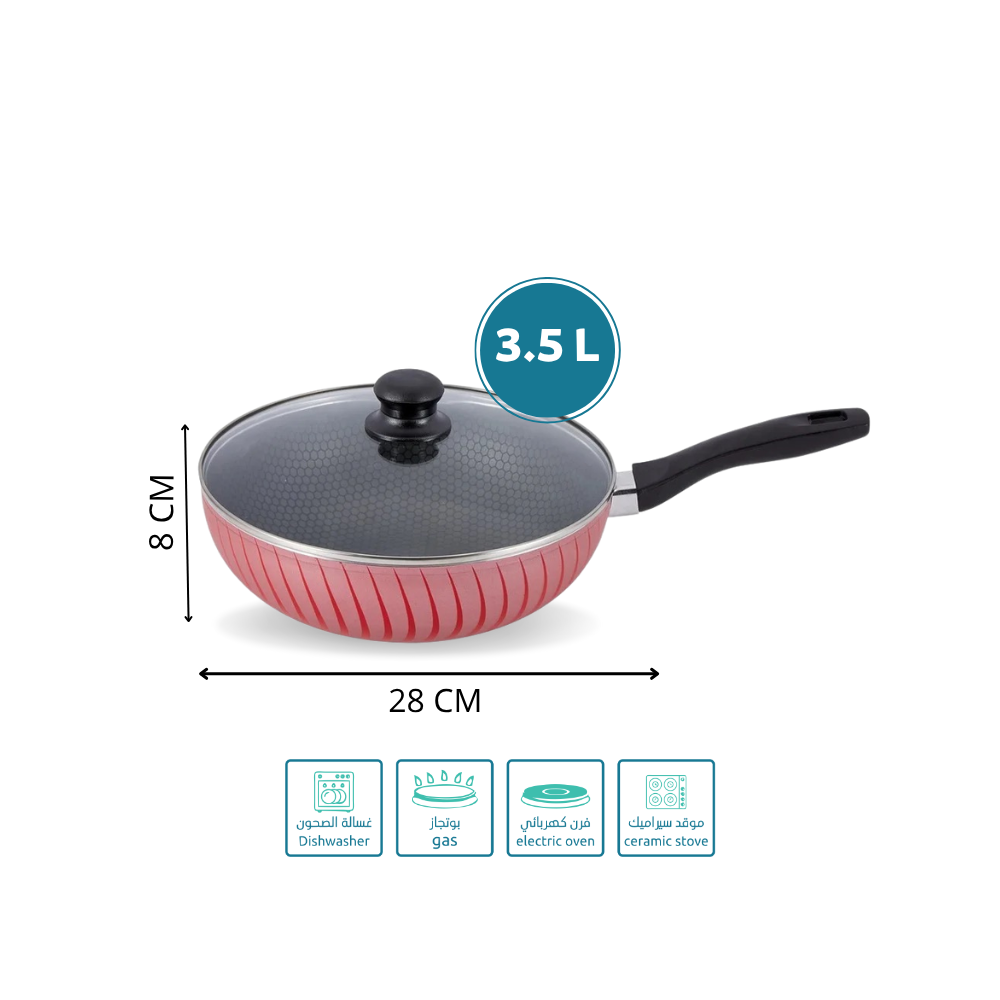 مقلاة بغطاء زجاج بسطح مانع للالتصاق متوفرة بمقاسين