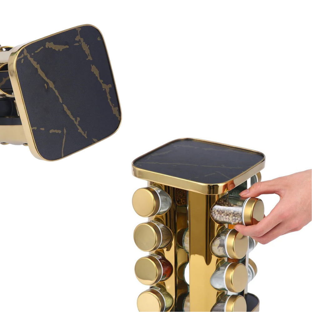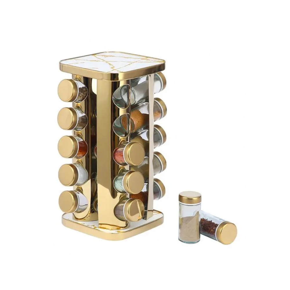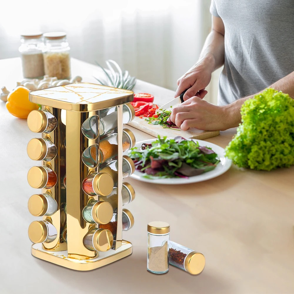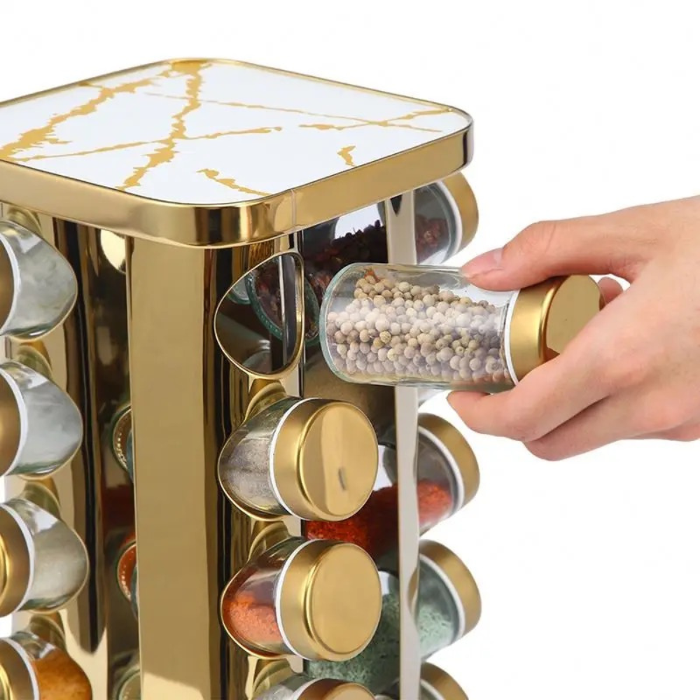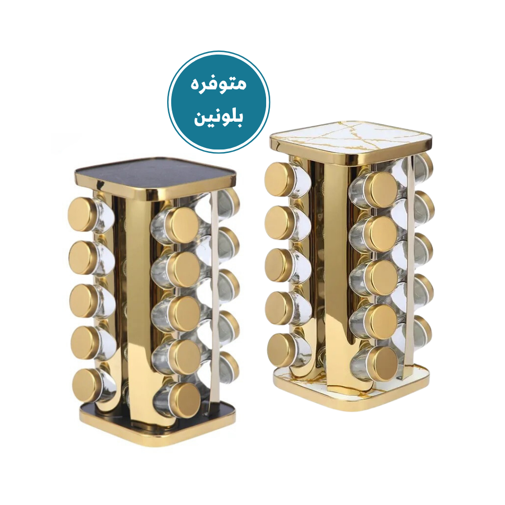 منظم توابل قابل لدوران 360 درجة مع 20 علبة زجاجية (متوفر بلونين)