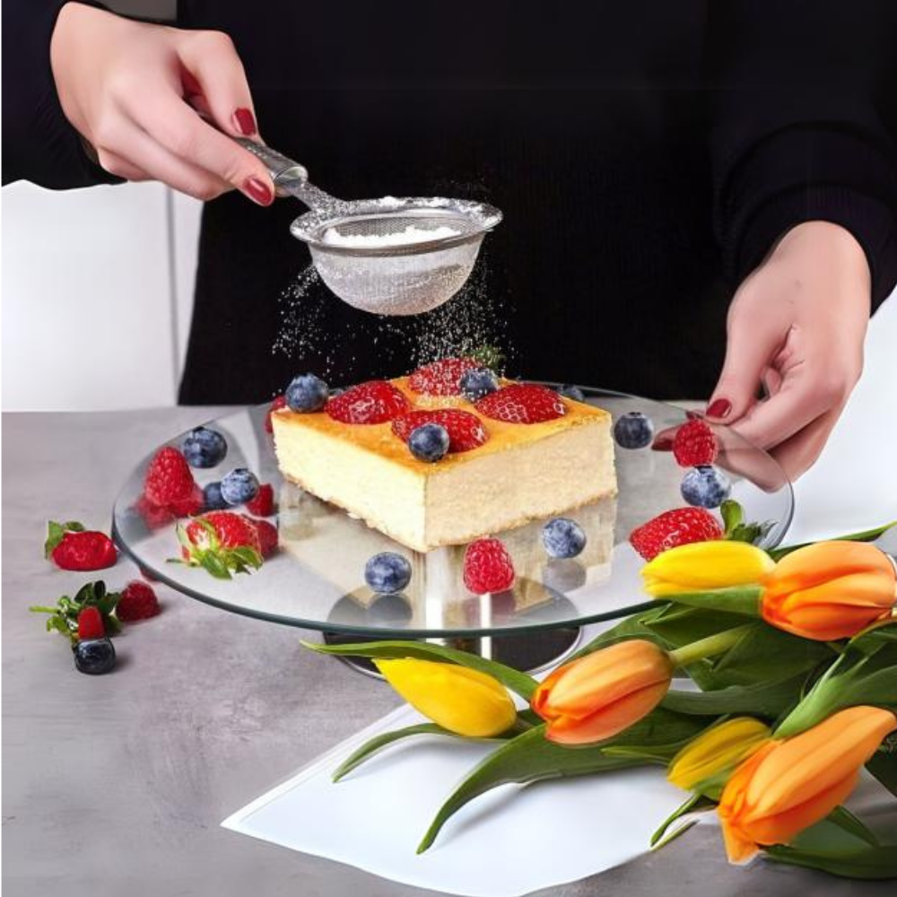 حامل كيك قابل للدوران بتصميم مبتكر دائري شفاف (متوفر بمقاسين)