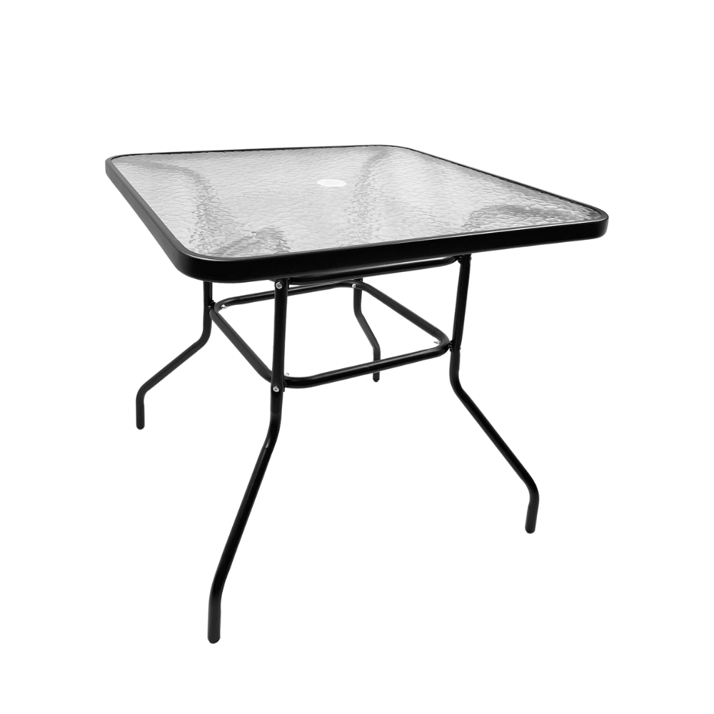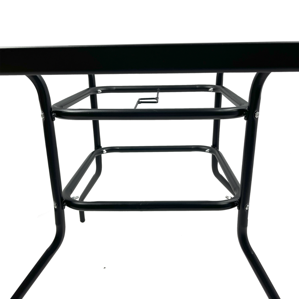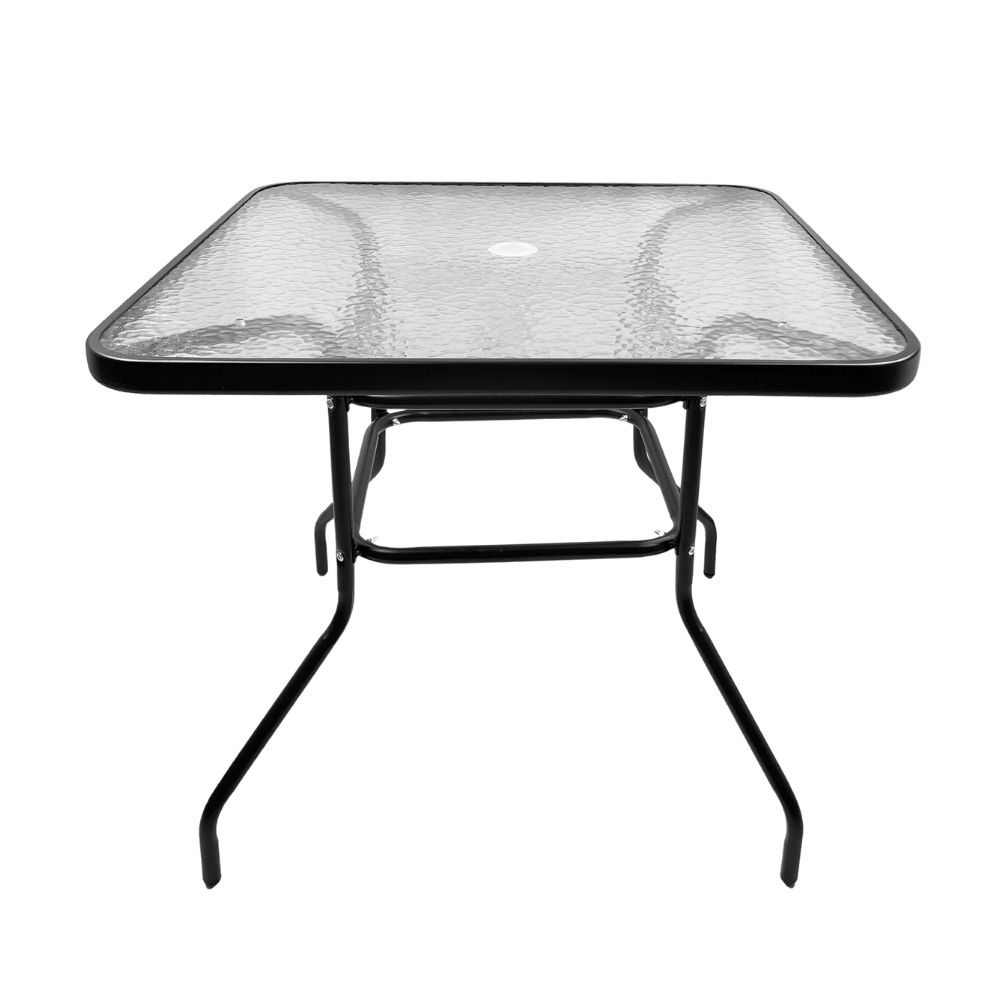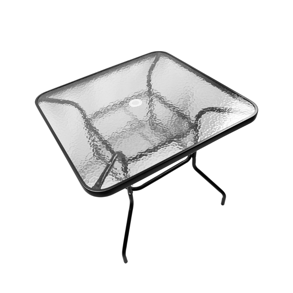 طقم طاولة وكراسي معدنية بتصميم شبكي عصري – 4 كراسي مع طاولة زجاجية مربعة
