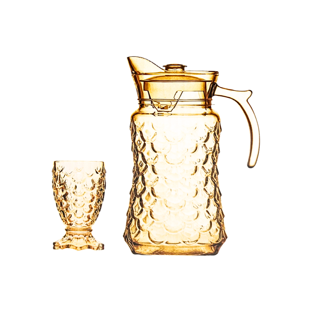 🧊 سعة مناسبة للمناسبات المختلفة: يأتي الإبريق بسعة 1.7 لتر، وهو مثالي لتقديم مختلف المشروبات كالعصائر، الشاي المثلج، والماء بطريقة عملية وجذابة. بينما الكؤوس الستة بسعة 230 مل لكل منها، مثالية للضيوف أو العائلة.