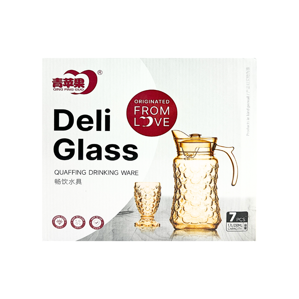 طقم زجاجي شفاف بني - إبريق مع 6 كؤوس للتقديم