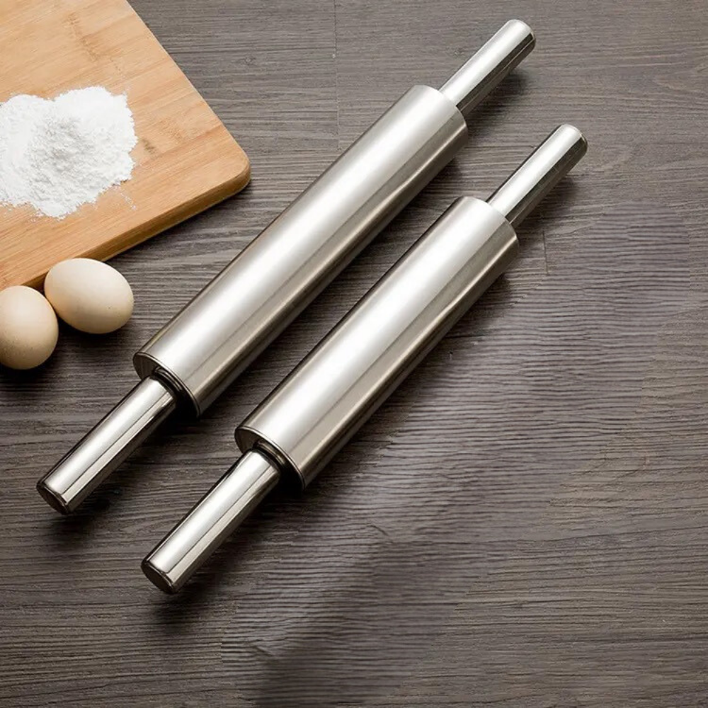 عصا فرد العجين ستانلس ستيل بمقبض متحرك متوفر بمقاسين